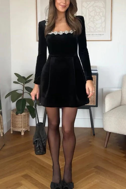 Rochie scurtă din catifea elegantă, embellisată cu strasuri - C336